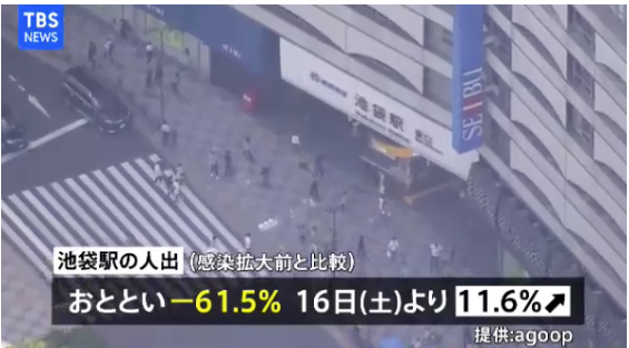 池袋的人流量比上周16日(周六)的人流量多了11.6%。許多日本市民接受采訪表示擔(dān)憂:“雖然能解封很高興,但是害怕大家就此松懈下來?吹浇诸^這么多人晃悠,有點(diǎn)慌。”